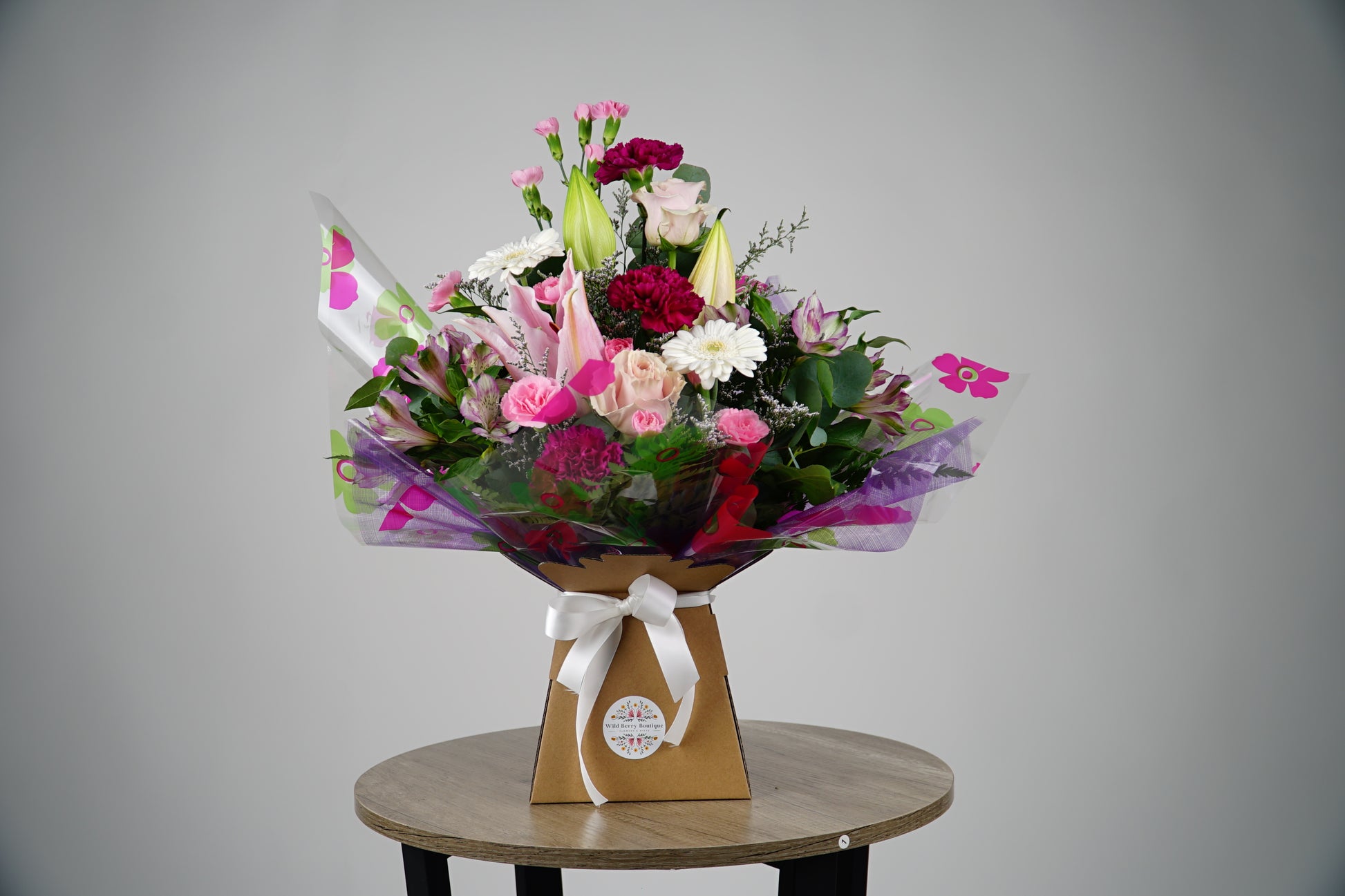 As we are an independent creative florist we rotate our flower selection and colour palette throughout the week, this is why we do not offer specific bouquet options. Each bouquet is individually crafted by one of our florists who will hand pick your flowers from the freshest seasonal selection we have stocked in our flower bar, each one with its own uniqueness.